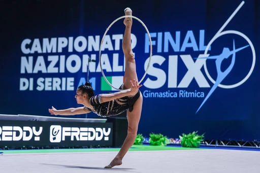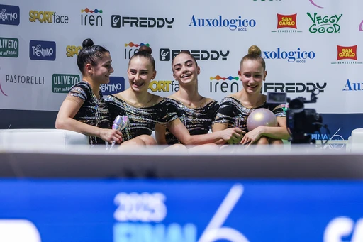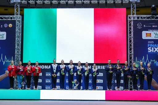 La tappa conclusiva si è aperta con una combattutissima semifinale contro l’ASU Udine, squadra fortissima che ha concluso la Regular Season in I posizione. Fabriano, pur presentandosi con una formazione quasi totalmente rinnovata rispetto al 2024, ha mostrato compattezza, preparazione e carattere. In semifinale sono scese in pedana Sofia Raffaeli (cerchio e clavette), Alina Vasilenko (palla) e Anna Piergentili (nastro). Le sfide per attrezzo hanno visto Fabriano vincere al cerchio, clavette e nastro, guadagnandosi meritatamente l’accesso alla finalissima.