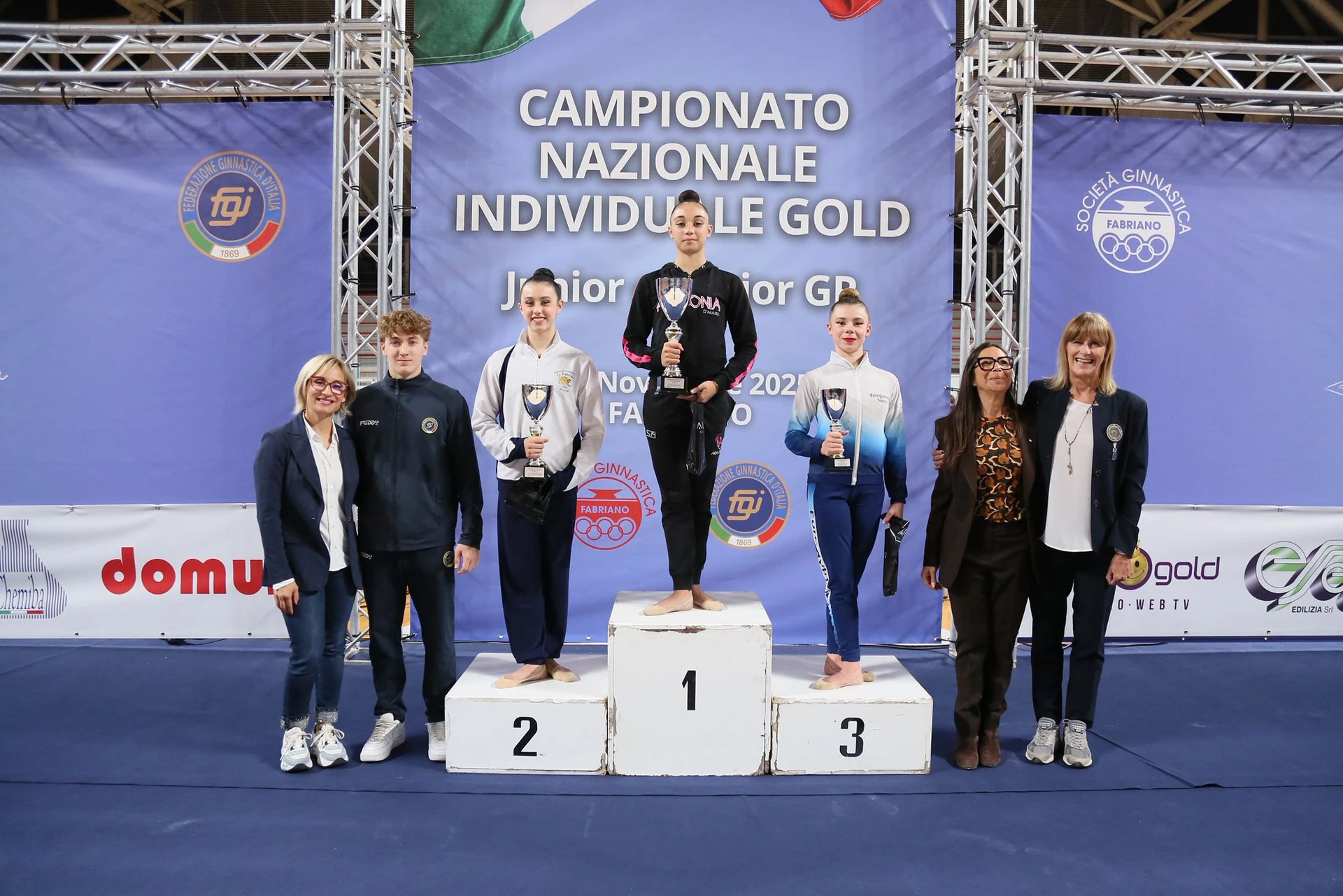 Eccoti i podi completi delle quattro categorie del Campionato Nazionale Individuale Gold Junior & Senior 2025 di ginnastica ritmica ad Ancona (1-2 novembre 2025):